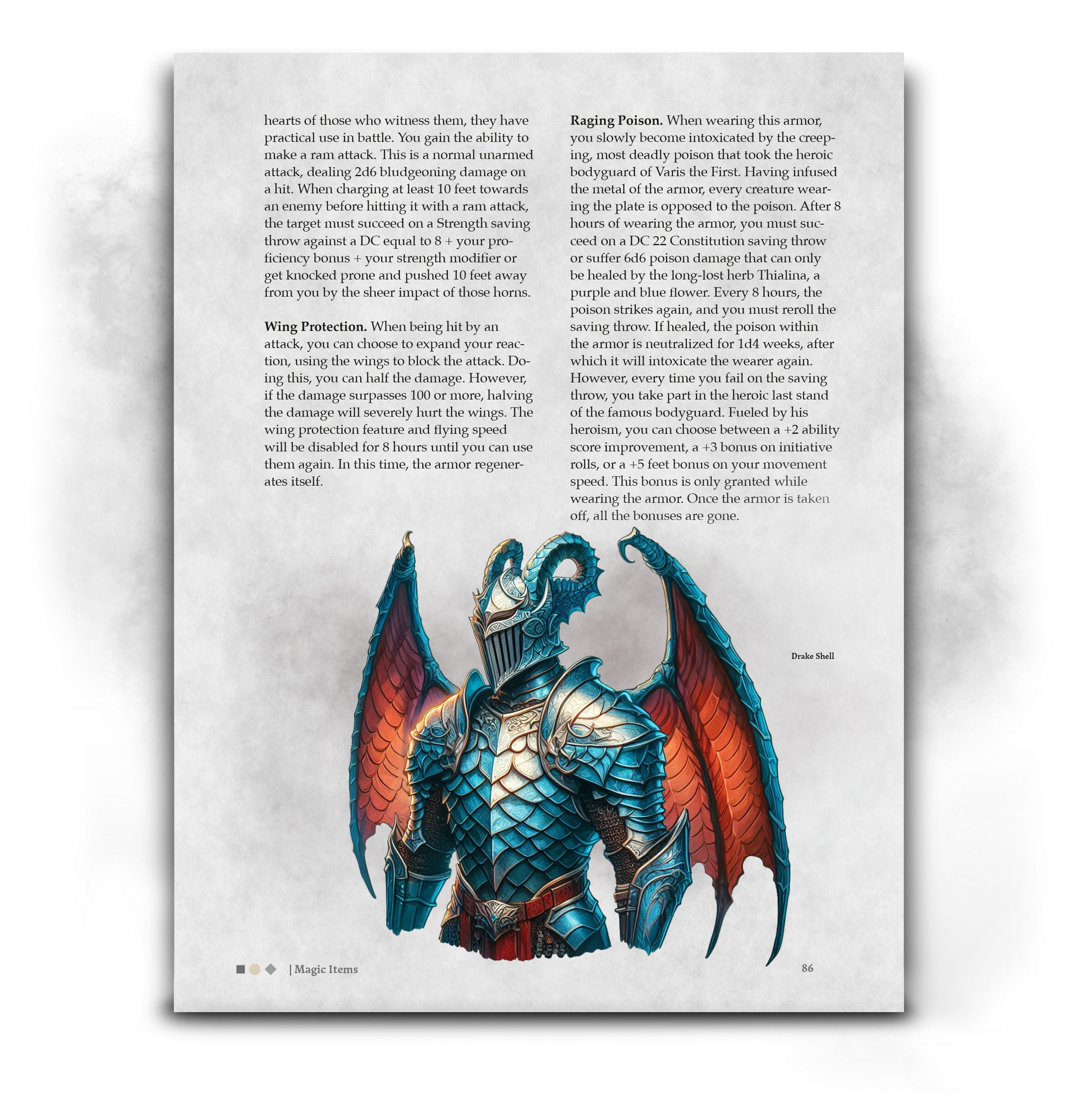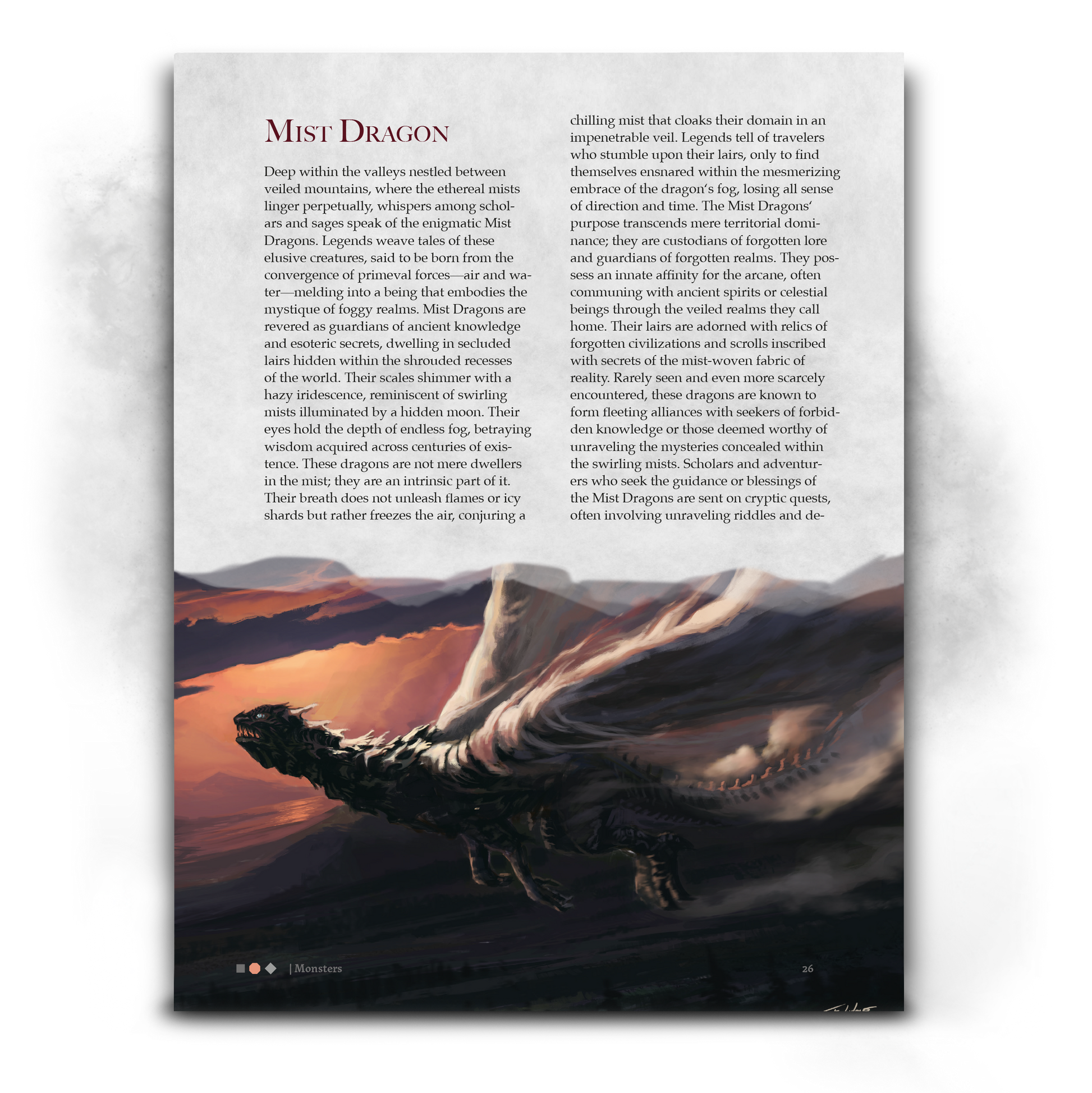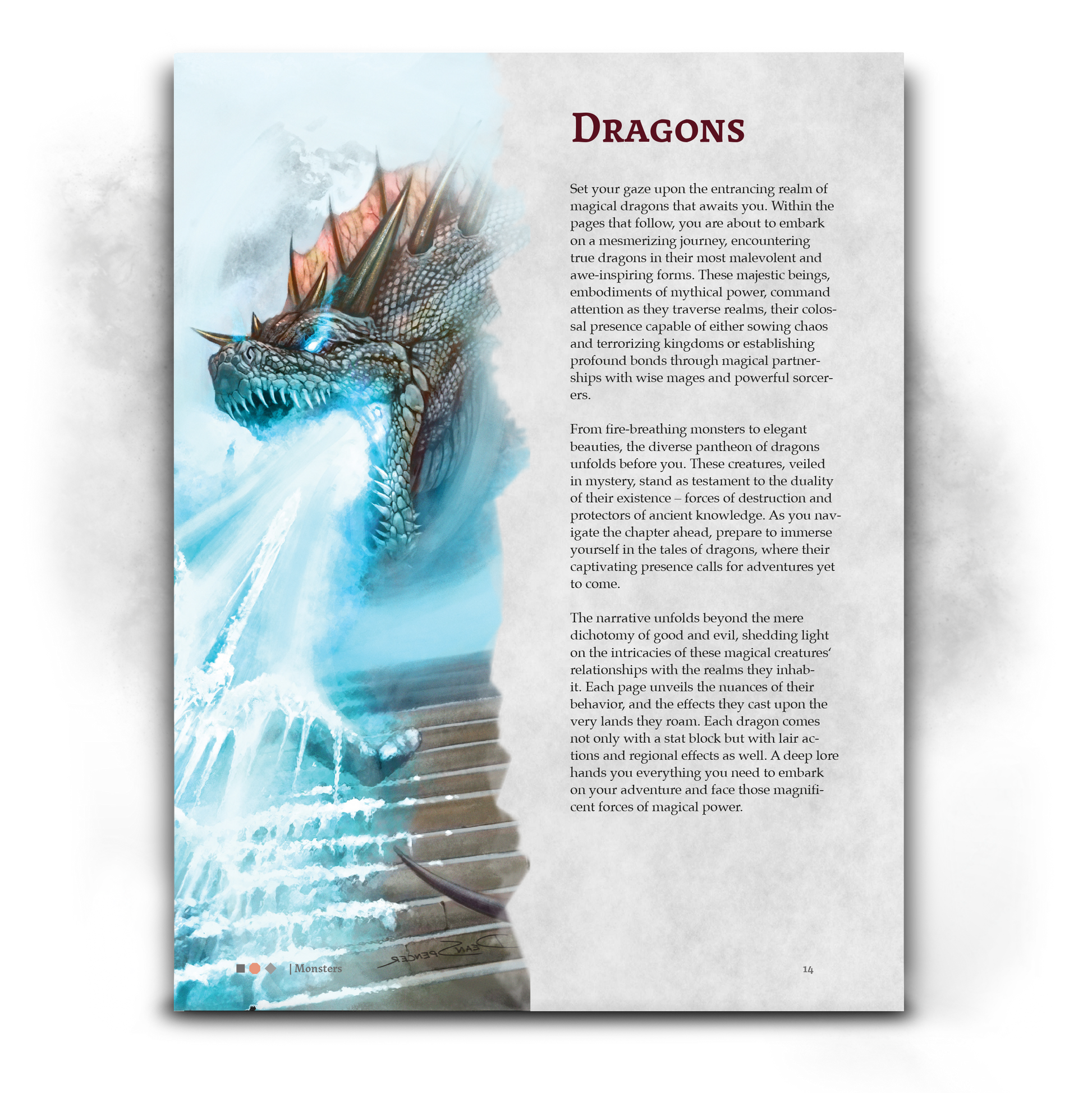 This compendium offers a glorious collection of dragons, draconic beasts, items, spells and subclasses to enhance your D&D5e games - everything you need when it comes to dragons!