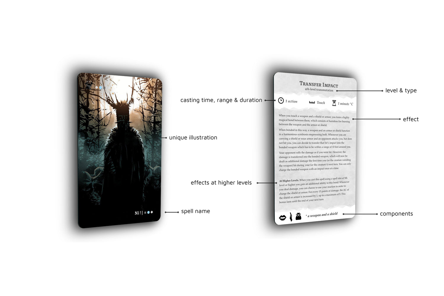 On the back of the card you will find every information needed for the spell.
